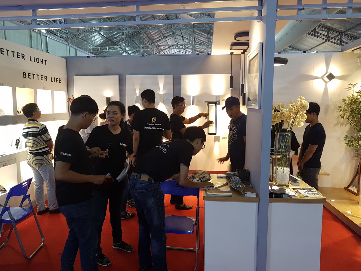 Cám ơn quý khách hàng từ nhiều nơi trên đất nước Việt Nam đã tham quan triễn lãm Viet Build tháng 6-2018 và đã ghé thăm gian hàng của Cosmos Lighting. Triễn lãm Viet Build lần này là sự kiện ra mắt của Cosmos Lighting sau 1 thời gian dài nghiên cứu và phát triển. Chúng tôi đã nhận được sự quan tâm của các anh/chị kiến trức sư, các công ty thiết kế, decor và các cty, nhà thầu xây dựng. Chúng tôi rất vui khi nhận được phản hồi: "Gian hàng tuy đơn giản mà rất ấn tượng". Chính xác đó là những gì Cosmos Lighting đang cố gắng xây dựng cho các sản phẩm của mình: "Đơn giản và thanh lịch". Tiêu chí này sẽ xuyên suốt cùng chúng tôi trong những dòng sản phẩm sẽ ra mắt sắp tới. Cosmos Lighting với mong muốn đem lại những trải nghiệm ánh sáng tốt nhất và thoải mái nhất cho không gian sống của bạn, cùng thiết kế hiện đại và tiêu chuẩn chất lượng đạt chuẩn Châu Âu, chúng tôi rất hy vọng được hợp tác chặt chẽ với quý khách hàng để cùng đồng hành và phát triển.