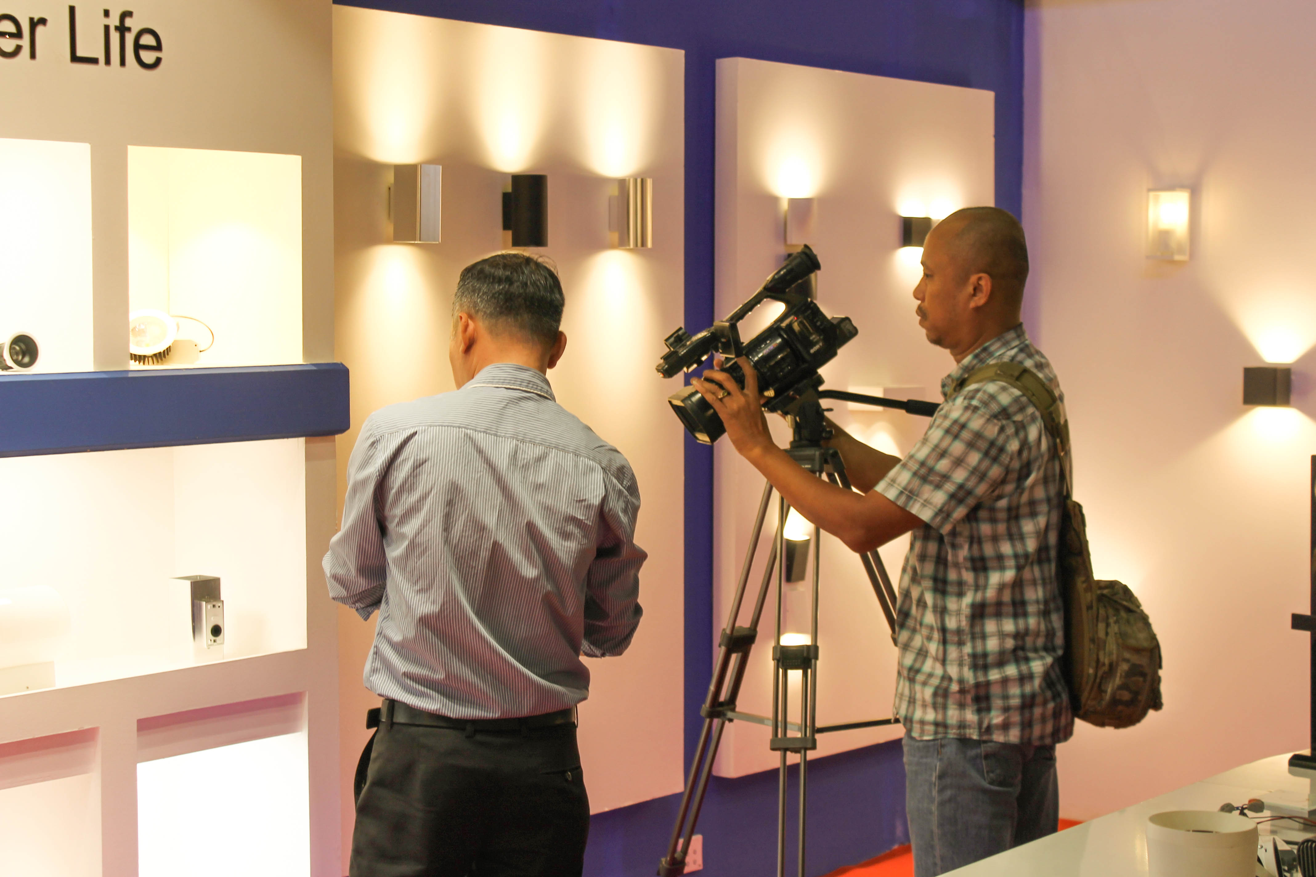 Một số hình ảnh quá trình công tác quay phim của đài truyền hình tại gian hàng của Cosmos Lighting: