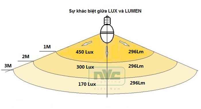 Lux tính theo diện tích mà thông lượng chiếu sáng bao phủ được.